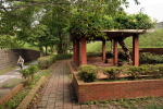 | 一度も線路が敷かれなかった路盤でも、それなりに鉄道らしい雰囲気はあります。 上段の橋梁は遊歩道整備の際に新造されたもののようです。 |