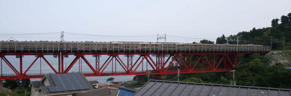 | 前川〜来迎寺 信濃川橋梁を遠望。カーブして突入 | 鯨波〜青海川 | ||||